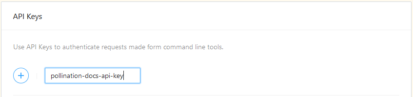 Input a human-readable name for the API Key, and click on the plus sign to create a new API key.