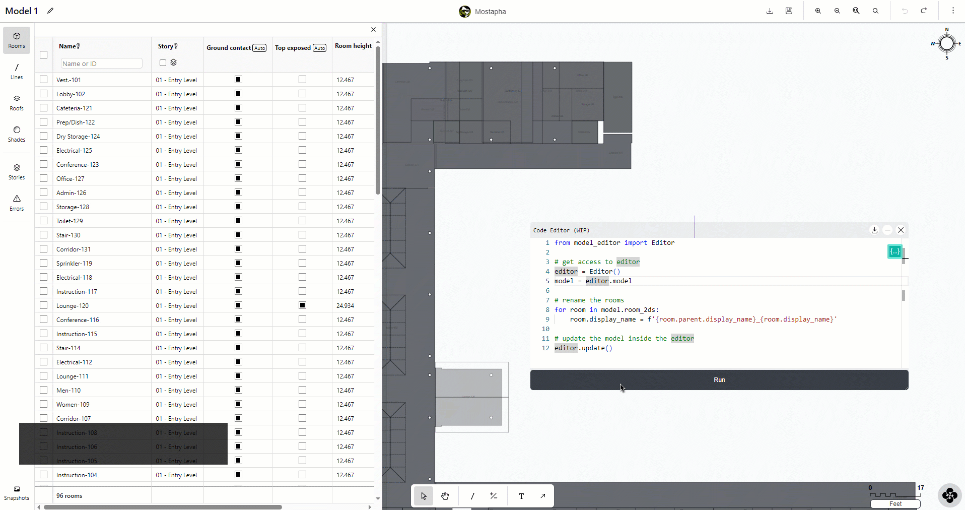 Now that we have access to the model we can iterate through the room\_2ds and rename them one by one. We access the name of the story/level by using the `parent` property of the `room_2d` object. You can see the documentation for a Dragonfly `Room2D` [here](https://www.ladybug.tools/dragonfly-core/docs/dragonfly.room2d.html#module-dragonfly.room2d).