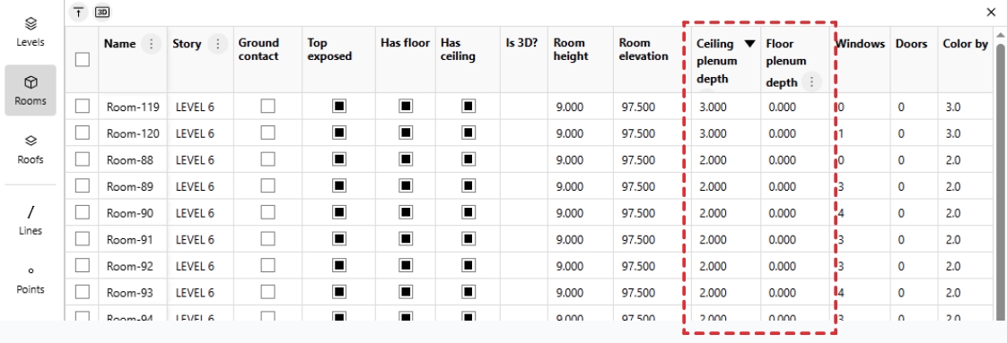 Starting from Pollination Revit v2.138.4, the Model Editor supports the functionality for adding ceiling or roof plenums to your rooms. Here is a recording that gives you an overview of the feature