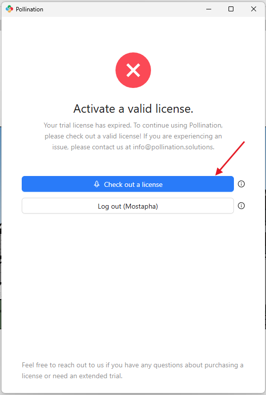 Click on Check out a license to check out a license from the license pool.\