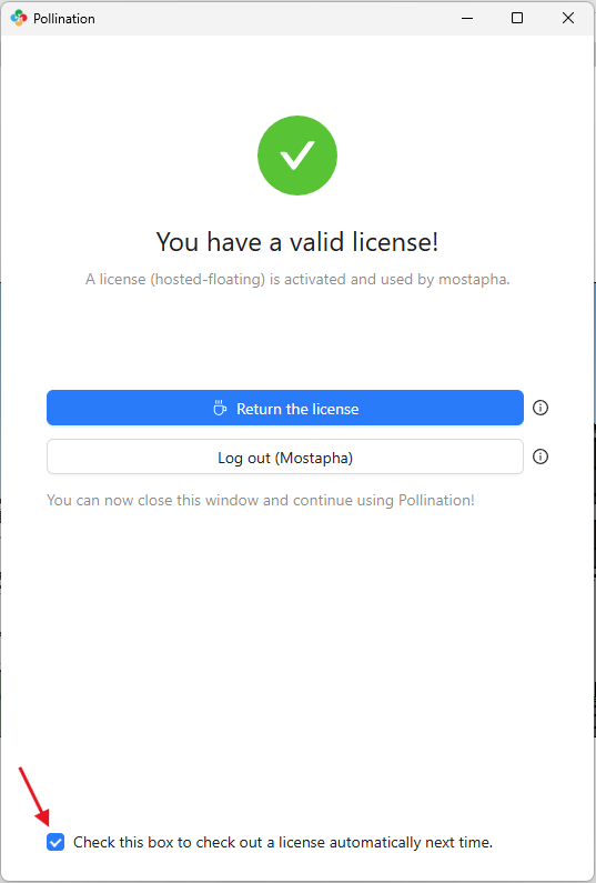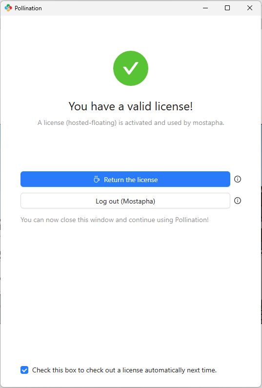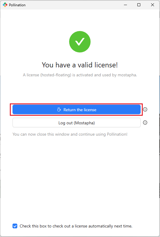 In either case, you can use the Pollination License Manager to retrieve a license from a license pool or return the license to the license pool.