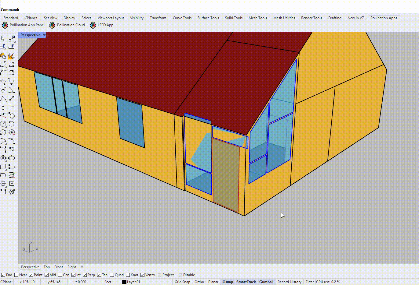 Add planar window surfaces to selected rooms or orphaned faces. For adding an orphaned apertures, press ENTER to skip selecting the host objects. Use "Pollination" command to open Room Manager or Orphaned Object Manager to check and edit each hosted window object or orphaned apertures.