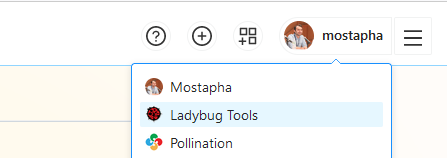 Click on the avatar image on the top right of the screen to select the appropriate account. You can choose your personal account or any of the organizations.