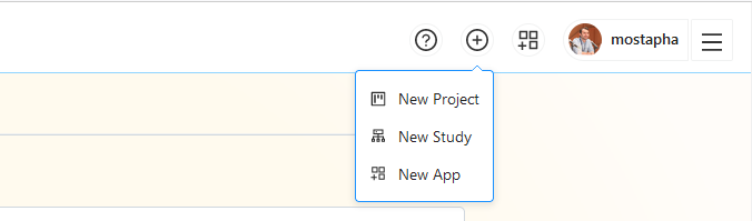 Click on the plus symbol on the upper right corner of the screen and select New Project from the dropdown.